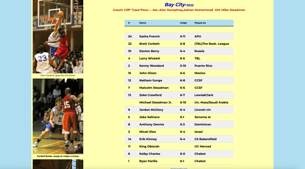 Woodard and Bay City ran into some NBA talent in the season’s final series — a best-of-three affair — as the Bay Raiders featured Lakers forward Juan Toscano-Anderson in Game 2. Kendall Smith of the Santa Cruz Warriors paced the Bay Raiders in Games 1 and 3.
